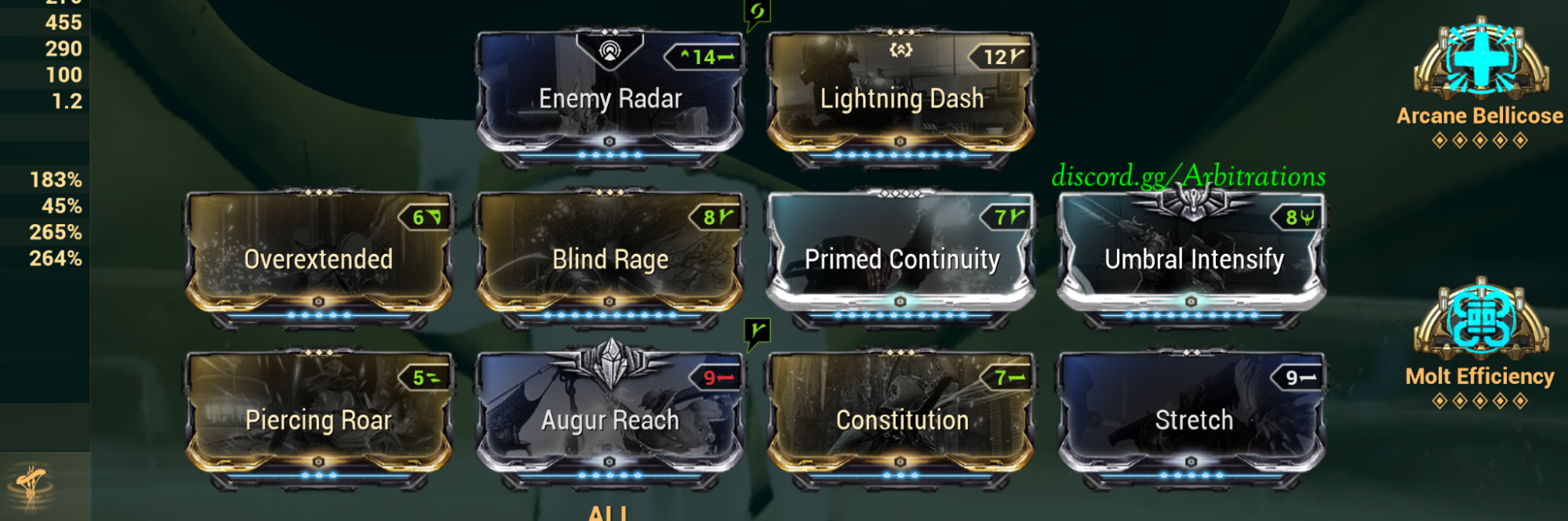 Running 175% efficiency with r4 fleeting and streamlined allows you to self sustain over 90% energy for Primary Overcharge without having Nourish on the squad. Umbral Intensify can be replaced with parkour, kavat’s grace or casting speed depending on preference. On smaller tilesets where all spawns are within 93m, can drop Enemy Sense for additional flex mod.