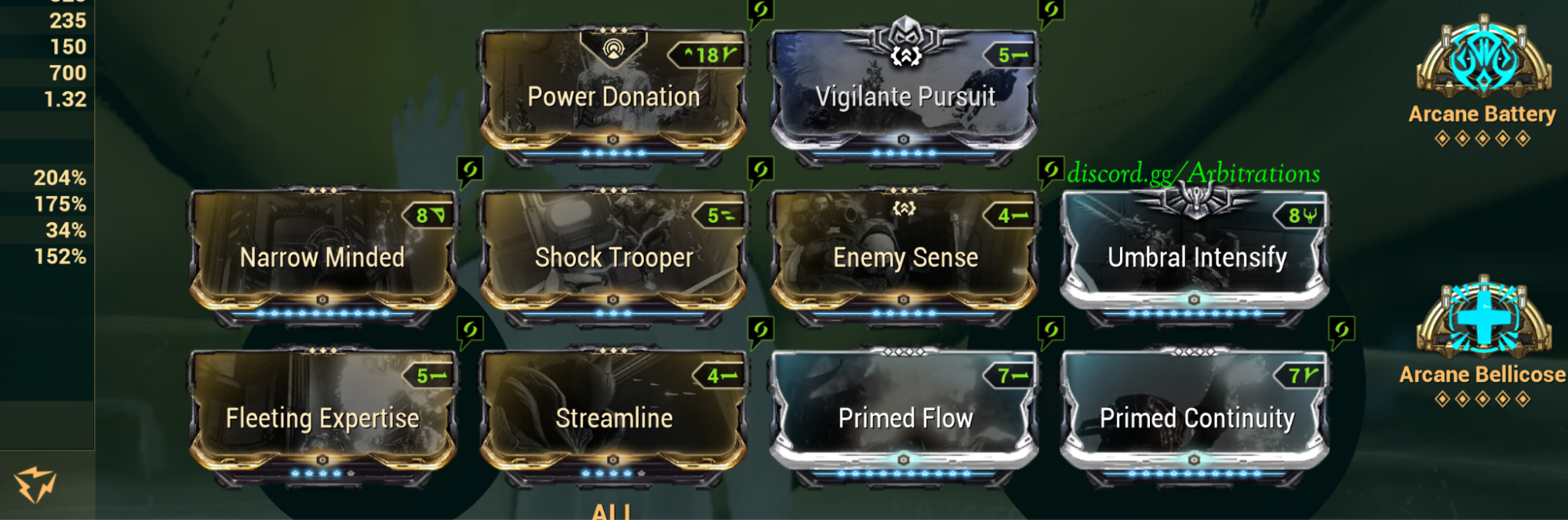 It is important that you equip “innate” battery style primary and secondary weapons when building your warframe specters loadout. Kitguns with pax charge do NOT count, specters do not copy mods or arcanes. Grimoire does work for this but it makes a lot of visual effects and noise that people dislike. Plinx blueprint can be bought from the market for 20k credits. Giving specters “innate” battery weapons prevents them from stealing your ammo drops as well as the constant reload sound bug when specter is out of ammo and you’re full. Ammo drops are player independent, but specters cause you to pickup even when full, deleting ammo. Give them a short range melee such as Vastilok or Furax so they shoot instead of trying to melee. Aside from these factors it doesn’t much matter what you put on them for arbi, they aren’t doing much killing. Recommended specter weapons in order of which is best fit for arbi: